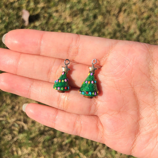 Christmas Tree Polymer Clay Charm - Silver Star (2 sizes available)