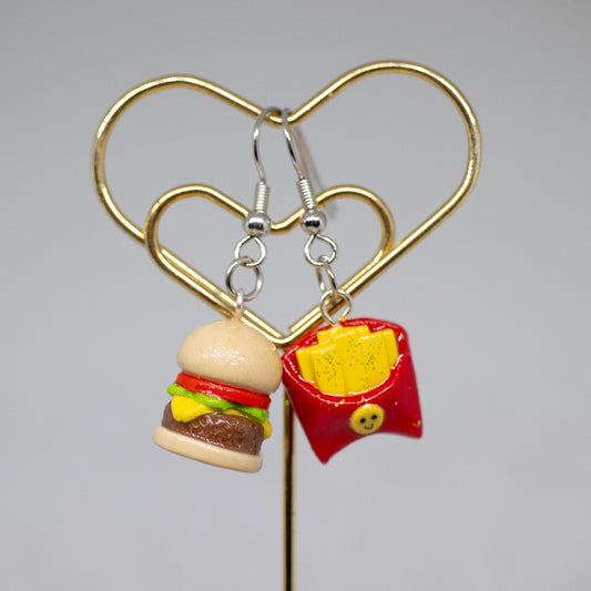 Burger and French Fries Matching Friendship Polymer Clay Charms