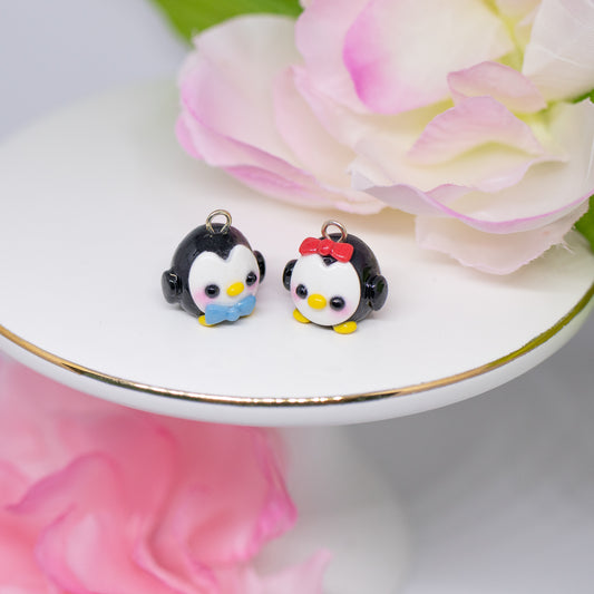 Penguins with Bows Matching Friendship Polymer Clay Charms