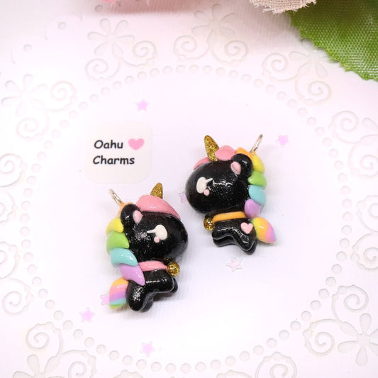 Dark Pastel Rainbow Unicorn Polymer Clay Charm (6 Styles Available)