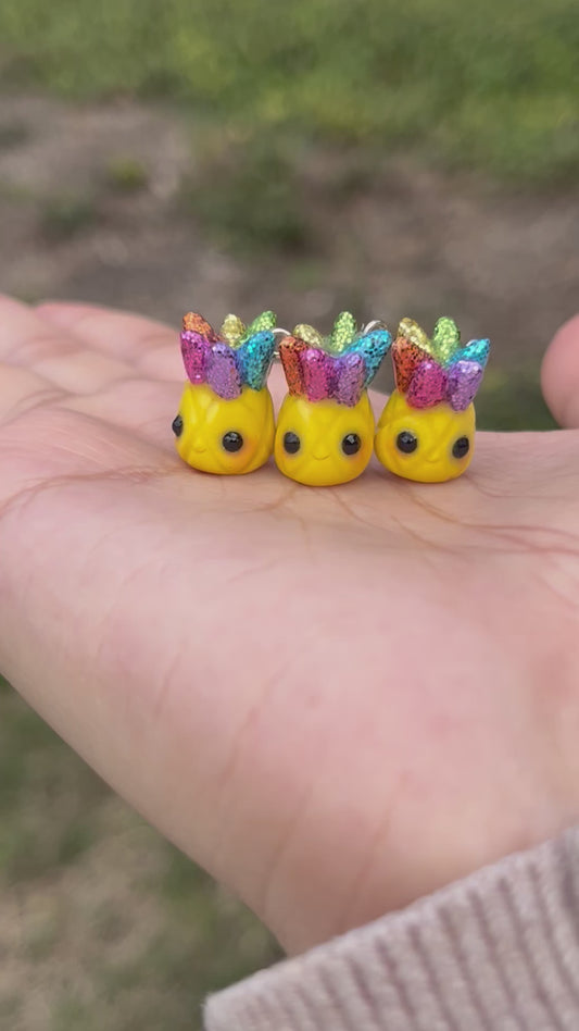Pineapple with Rainbow Glitter Leaves Polymer Clay Charm