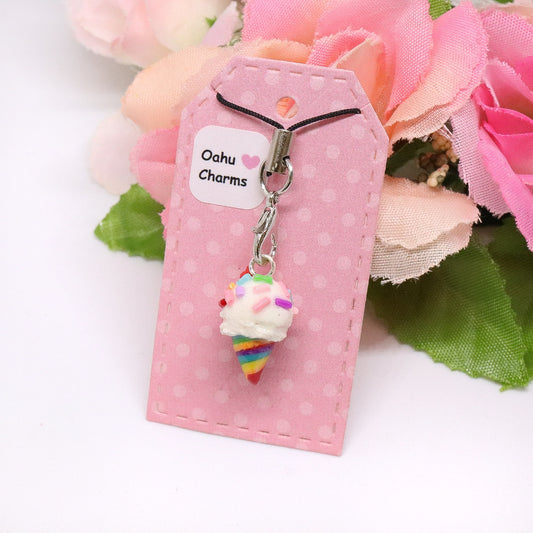 Strawberry Ice Cream with Rainbow Sprinkles Polymer Clay Charm