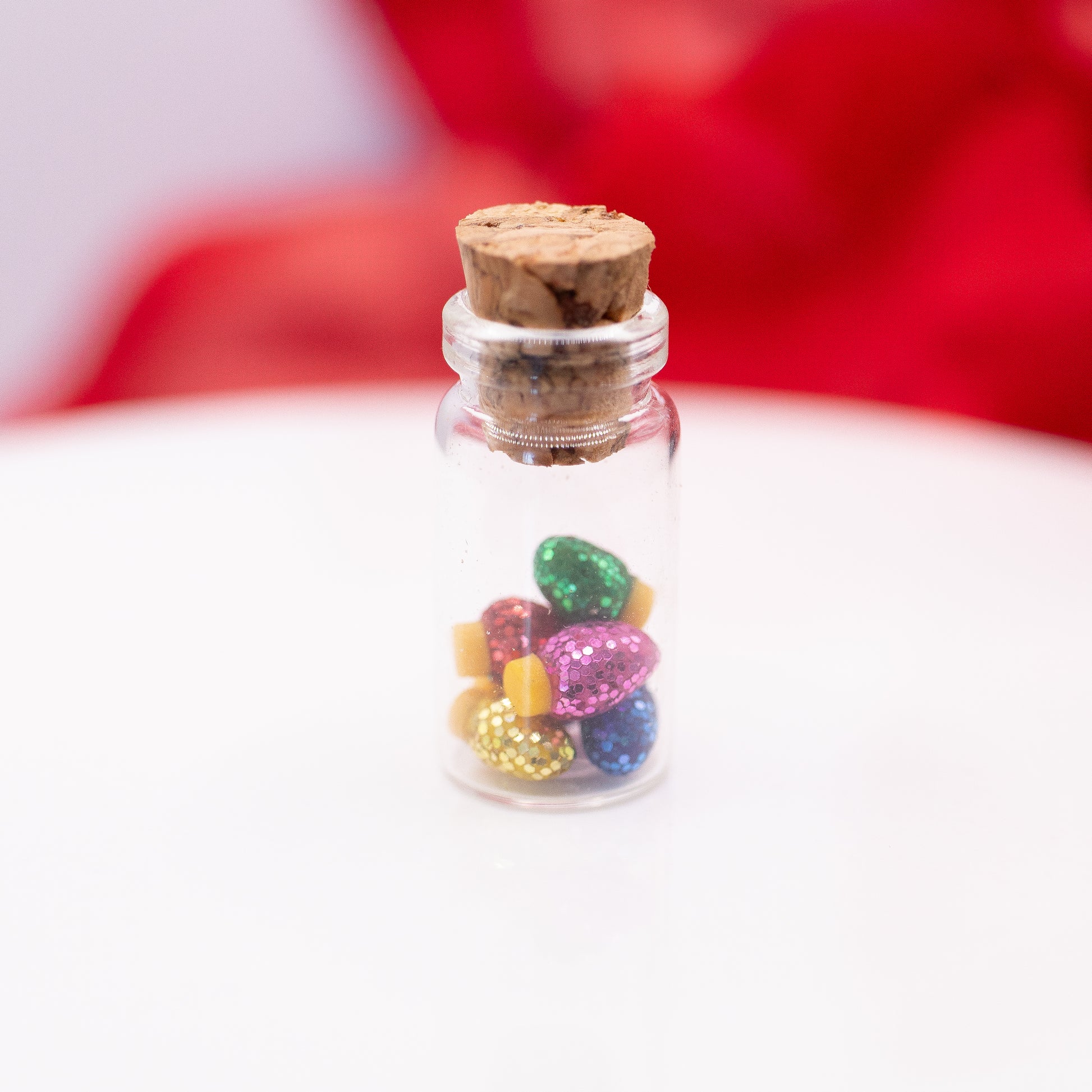Cute mini jars filled with Christmas cheer! 🎄This jar is filled 6 colorful, Christmas lightbulbs covered in sparkly glitter! ⭐ Disclaimer: This little jar is made from glass, making it delicate and fragile. It will break if dropped, please handle with care and keep away from small children/animals.