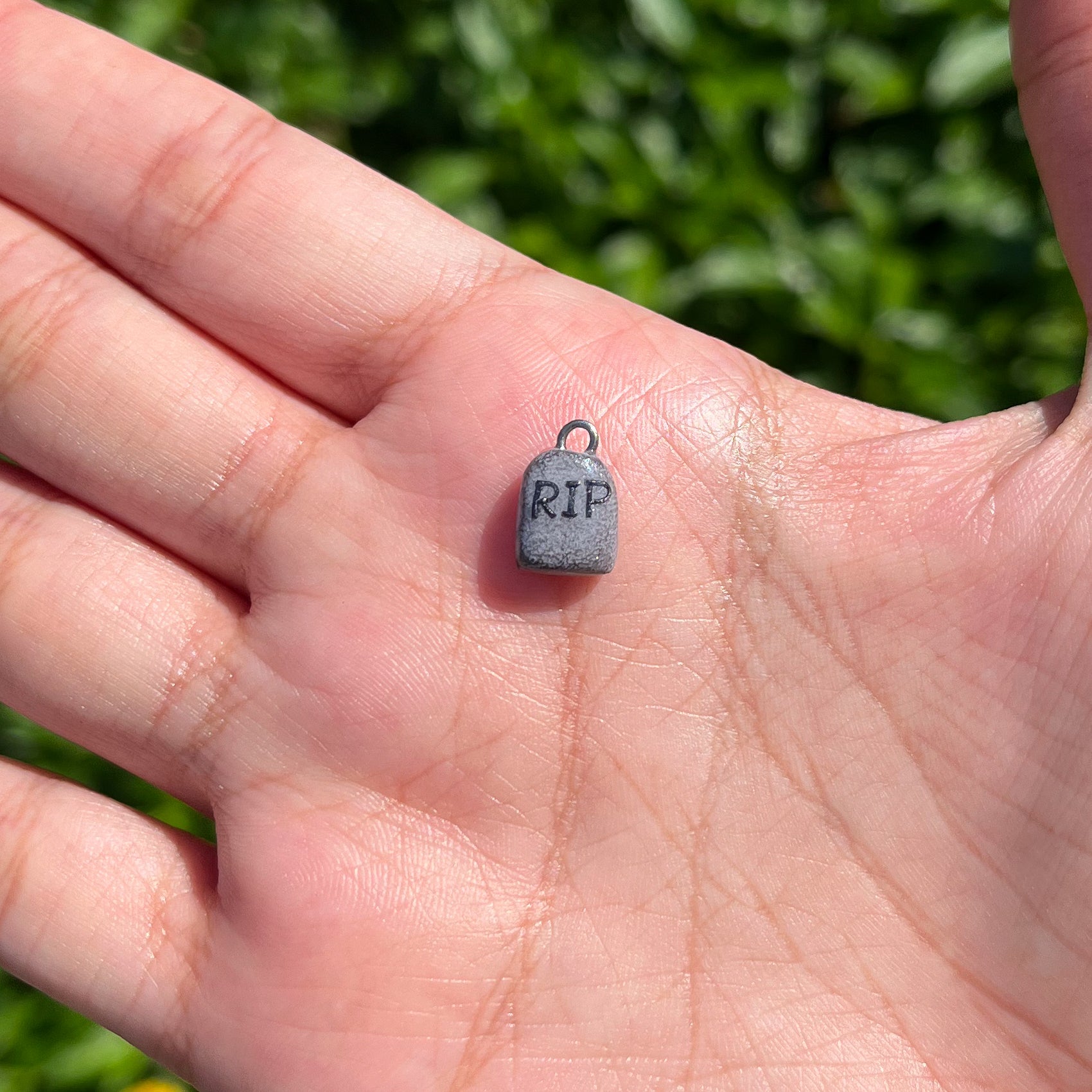 A super, tiny miniature R.I.P Gravestone clay charm. šŖ¦Ā The perfect little charm for the spooky Halloween season!