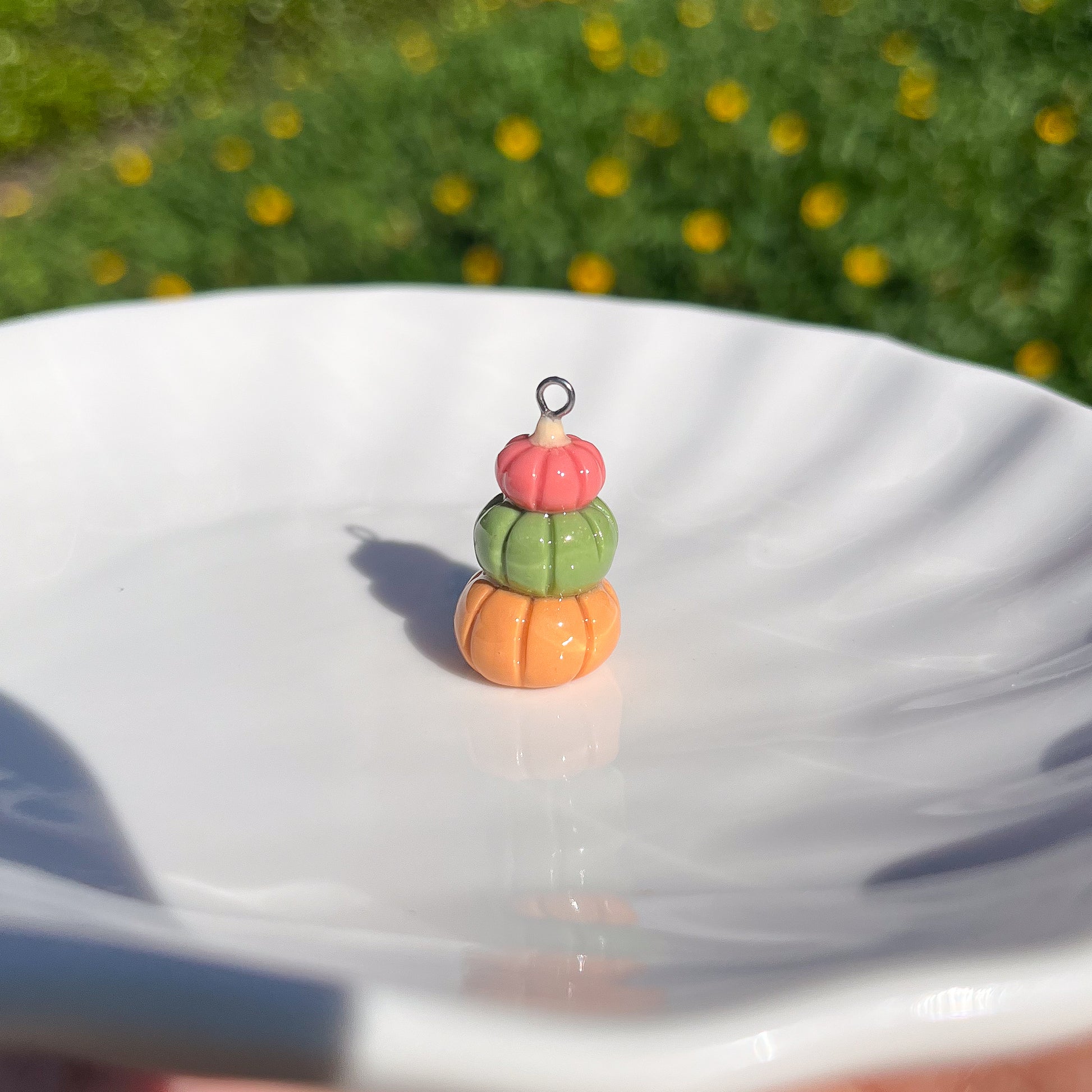 A simple, cute pumpkin stack charm. This charm has 3 pumpkins stacked on top of each other! Orange, green and red pumpkins!🍂 The perfect little charm for the fall season!
